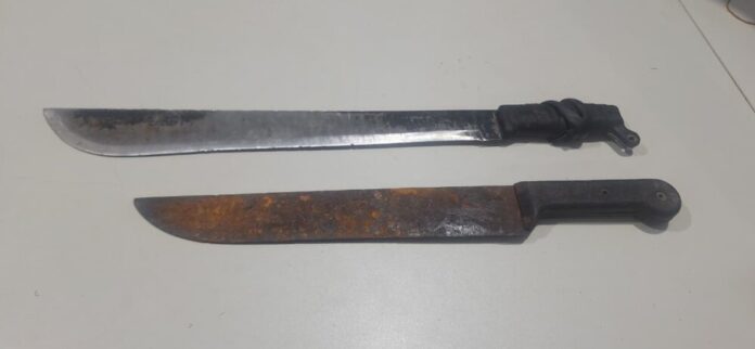 Movido por ciúmes, o homem passou a imaginar que outro indivíduo estaria dentro da residência. Em seguida, empunhou dois facões e fez ameaças de morte, afirmando ainda que atacaria qualquer pessoa que tentasse defendê-la.