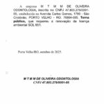 A empresa M T M M DE OLIVEIRA ODONTOLOGIA, inscrita no CNPJ 47.803.279/0001-05, estabelecida na Avenida Carlos Gomes, 1799 – São Cristóvão, PORTO VELHO – RO, 76804-085. Torna público, que requereu a renovação da licença ambiental SOL 651.